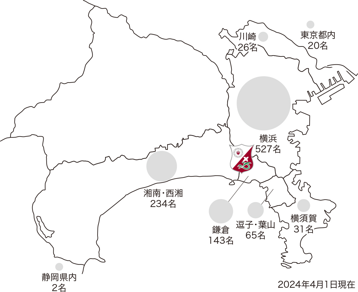 ※約半数が清泉小学校卒業。クラス名は聖書の地名から付けられており、ベトレヘム組(B)、エルサレム組(J)、ナザレト組(N)、パレスチナ組(P)、カナ組(C)となっています。